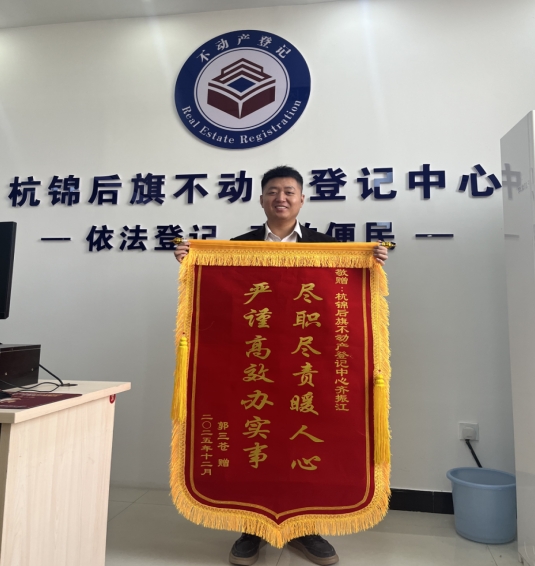 一面锦旗,一份肯定;一句感谢,一份动力。杭锦后旗不动产登记中心将始终以群众需求为导向,不断优化服务流程、提升服务质效,切实解决群众办事过程中的急难愁盼问题。