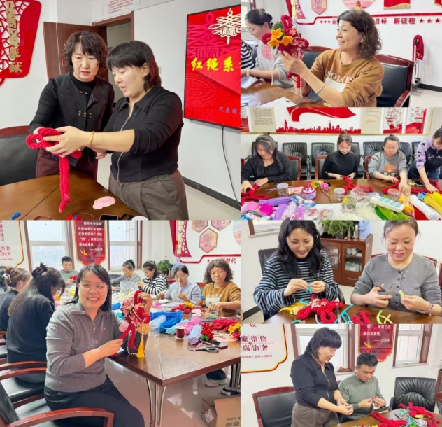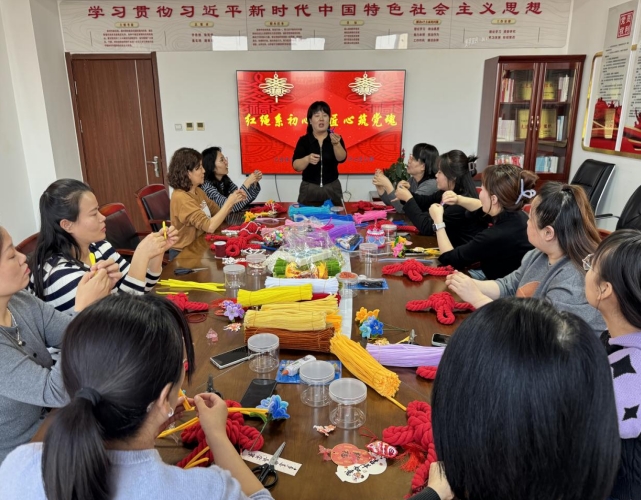 活动现场暖意融融,经过简单的讲解后,党员干部们纷纷开始动手制作。大家手持红绳,耐心穿绕、打结、收紧,逐渐编出一个个饱满规整的中国结。随后,又用彩色扭扭棒扭折缠绕,做出朵朵灵动的小花,大家将做好的花饰精心点缀在中国结上,红绳的庄重与彩花的灵动相互映衬,每一件作品都承载着大家的巧思与期许。
