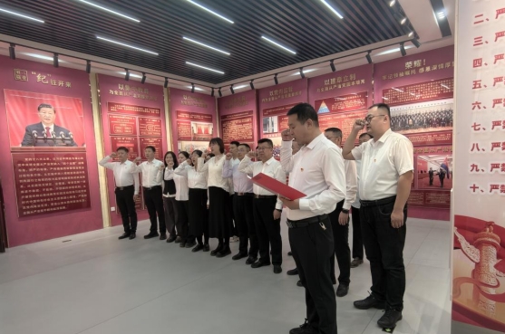 在陈列着本市反面典型警示案例的展墙前,全体党员庄严肃立,面对鲜红党旗,重温了入党誓词。铿锵有力的誓言,既是对初心使命的再次铭记,也是对廉洁自律的坚定承诺。在反面典型的映照下进行宣誓,使党员干部在强烈的对比中,进一步强化了纪律意识、规矩意识和底线思维。