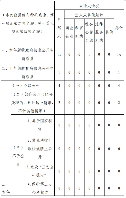 (二)依申请公开。通过来访、网络平台、邮寄等方式收到政府信息公开申请16件,已全部按要求答复办结。