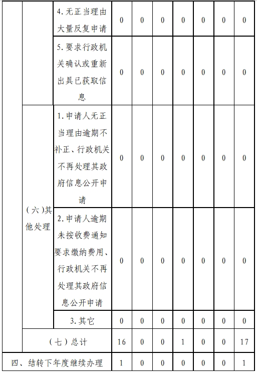三、收到和处理政府信息公开申请情况