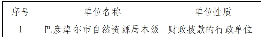 2、从预算单位构成看,纳入本单位2025年单位汇总预算编制范围的预算单位共计1家,具体包括:巴彦淖尔市自然资源局本级。详细情况见表: