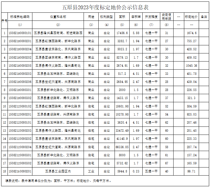 2023年五原县标定地价更新成果