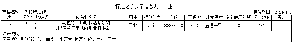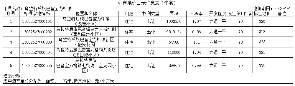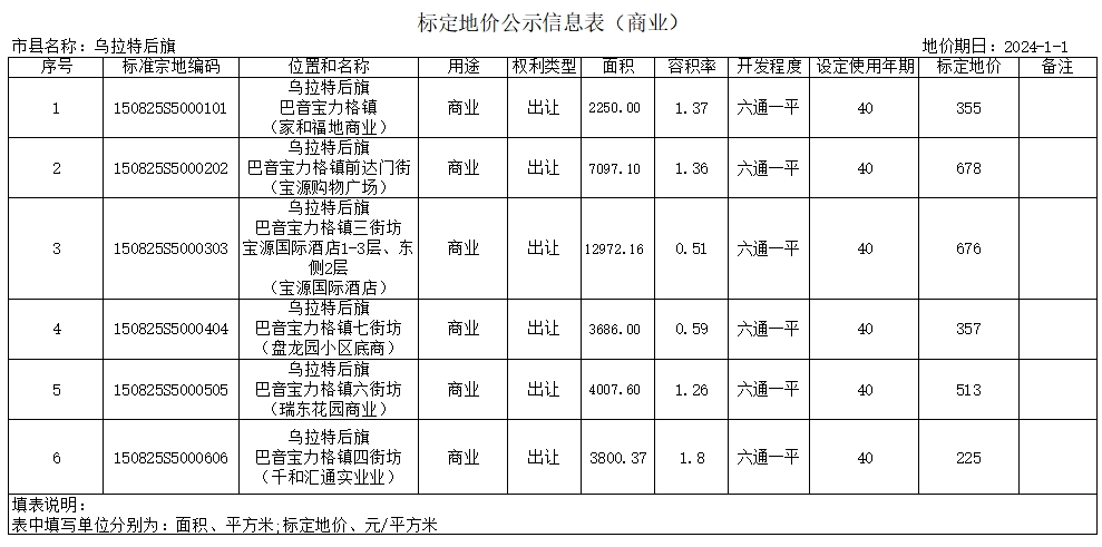 乌拉特后旗2024年标定地价修正系数表.xlsx