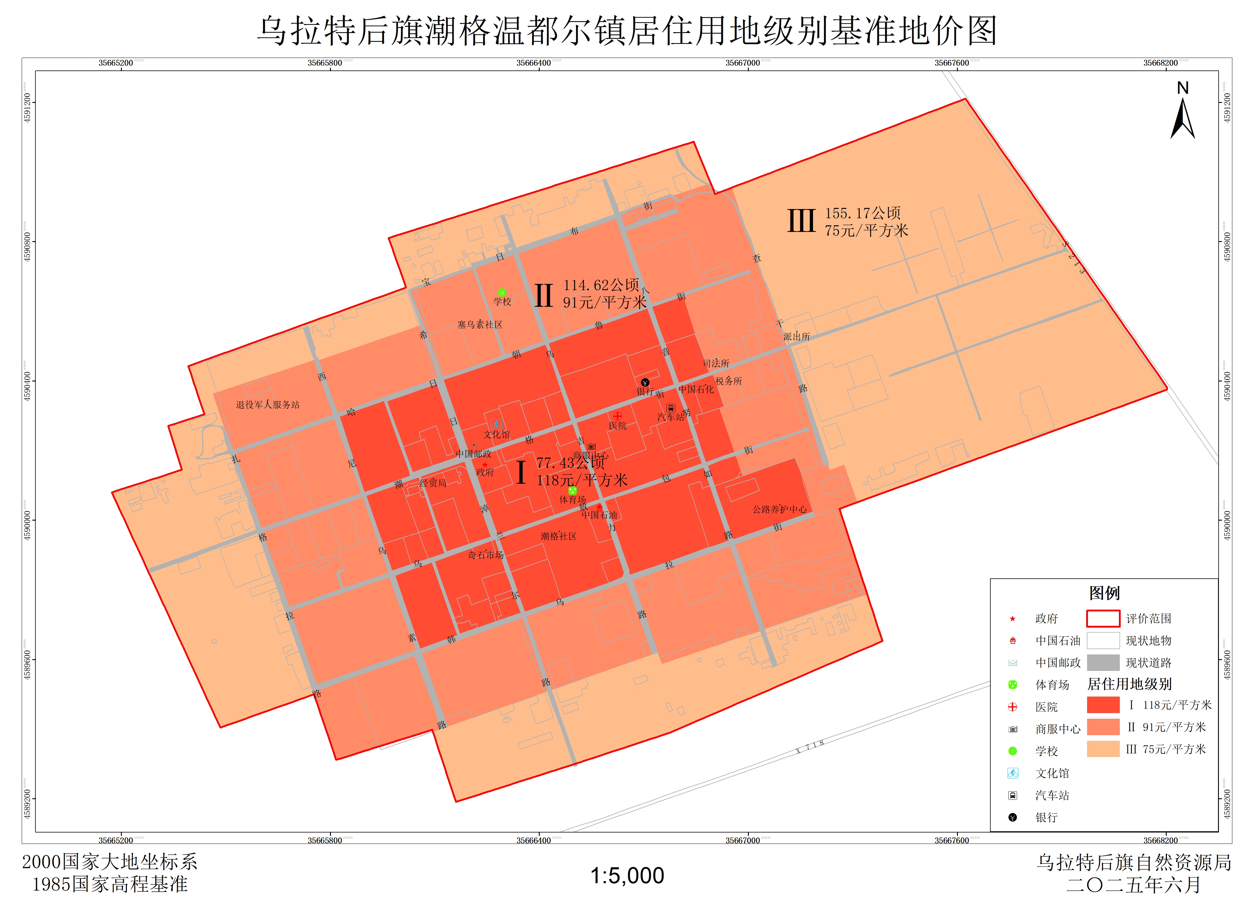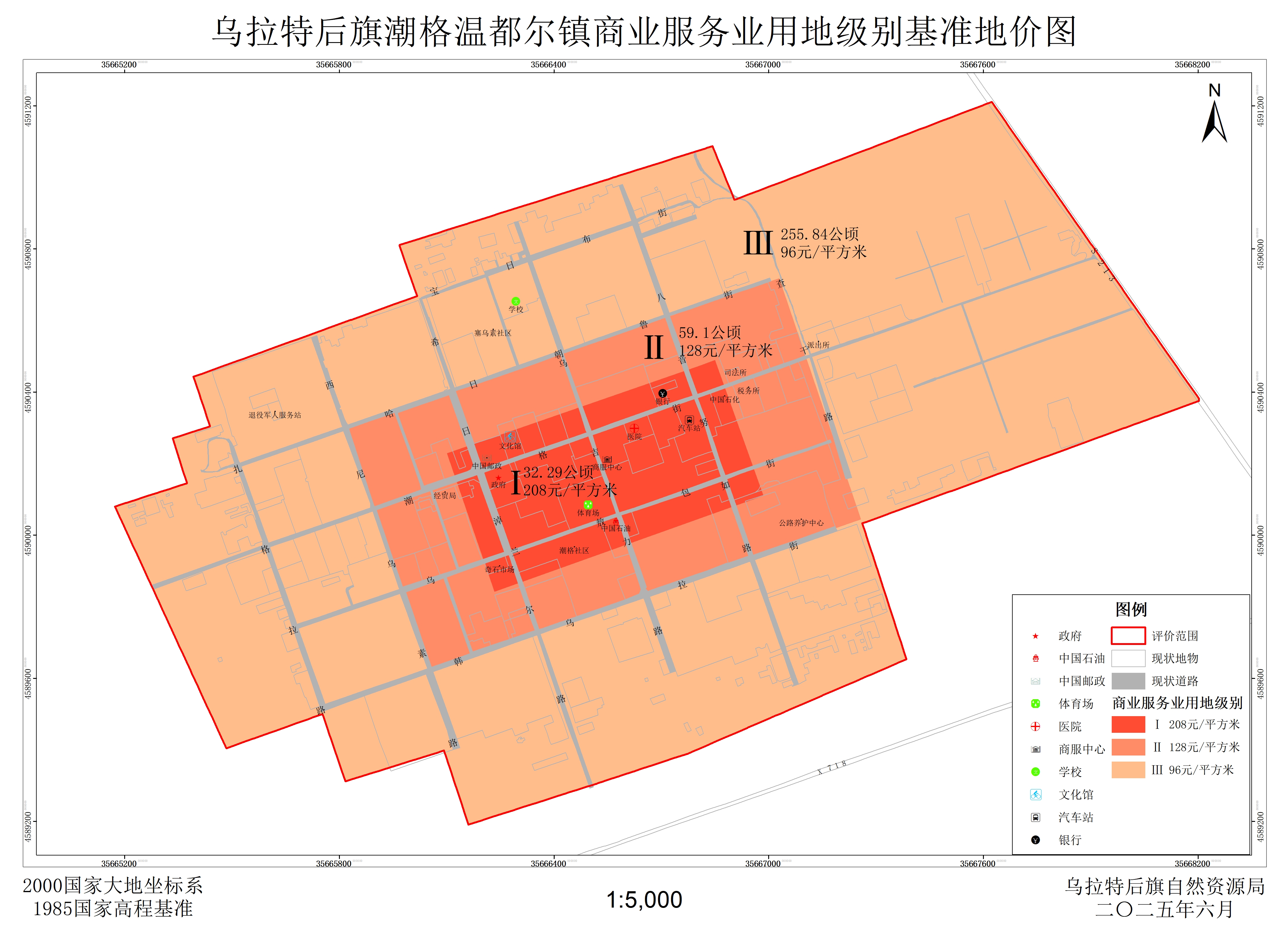 乌拉特后旗潮格温都尔镇土地定级与基准地价更新成果