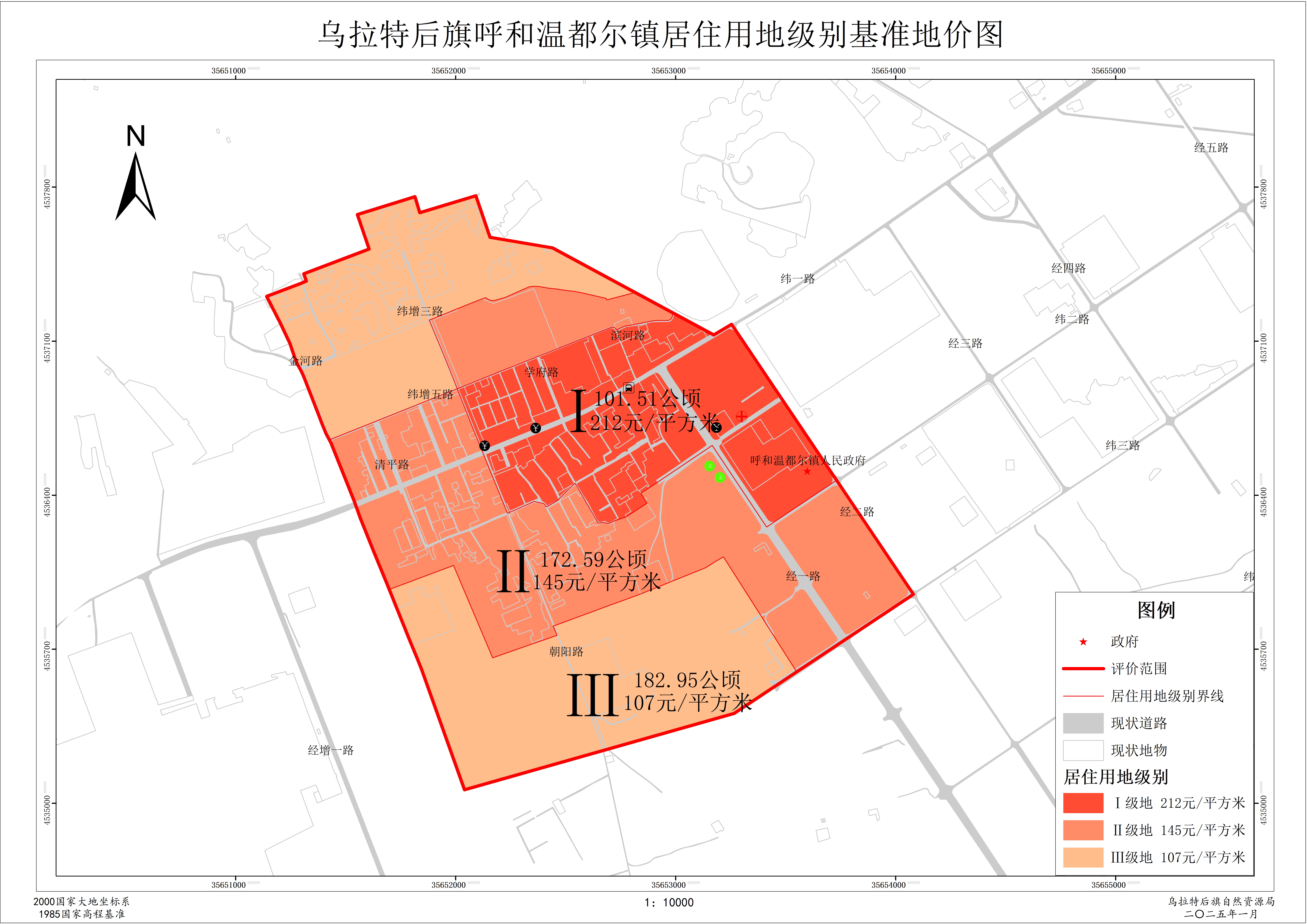 乌拉特后旗呼和温都尔镇土地定级与基准地价更新成果