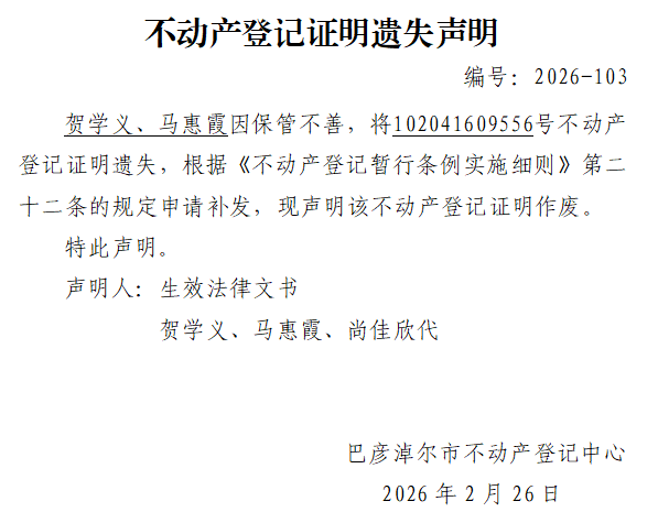不动产登记证明遗失声明