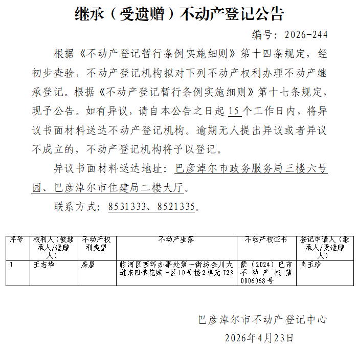肖玉珍继承(受遗赠)不动产登记公告