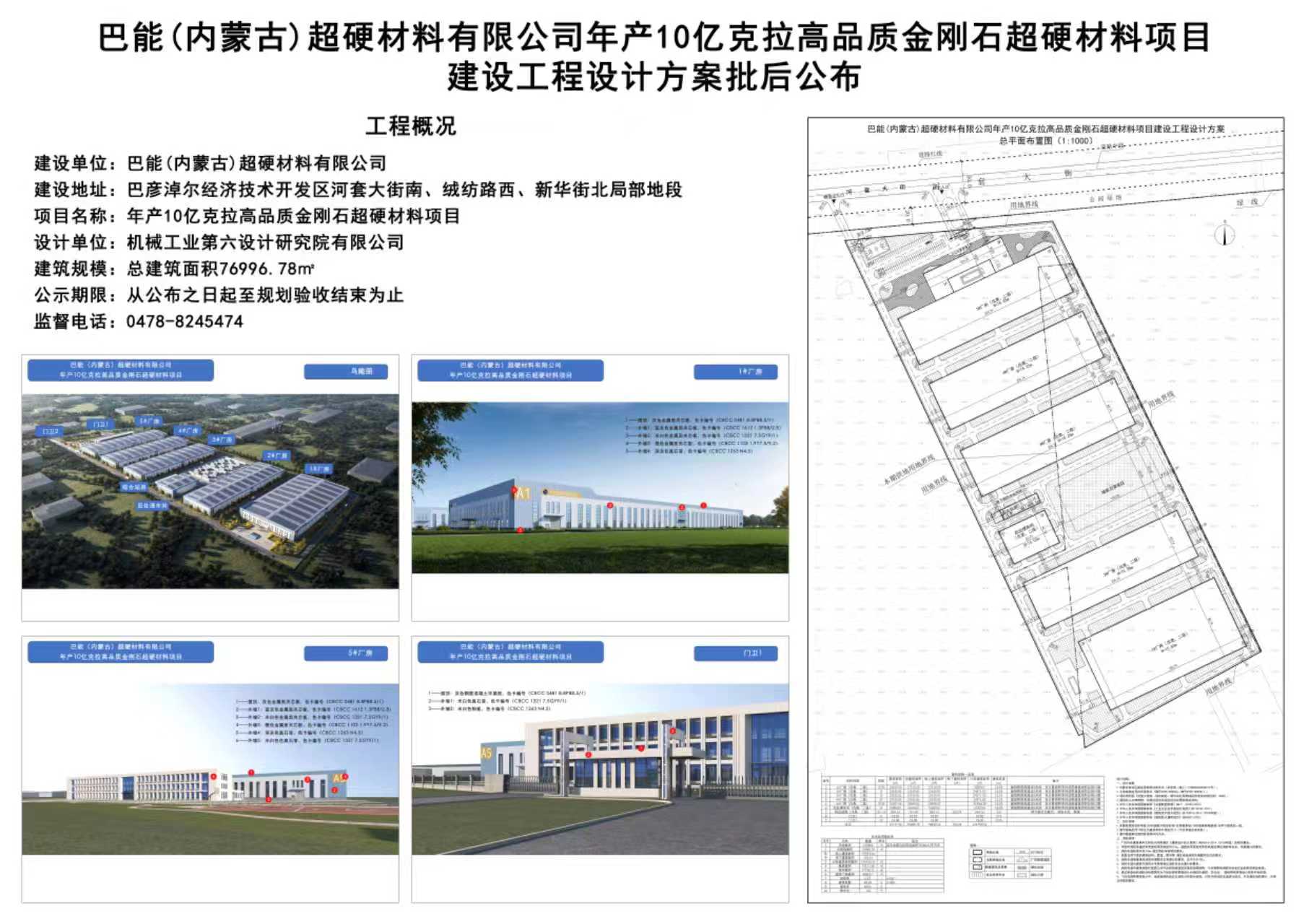 巴能(内蒙古)超硬材料有限公司年产10亿克拉高品质金刚石超硬材料项目建设工程设计方案及造型批后公布