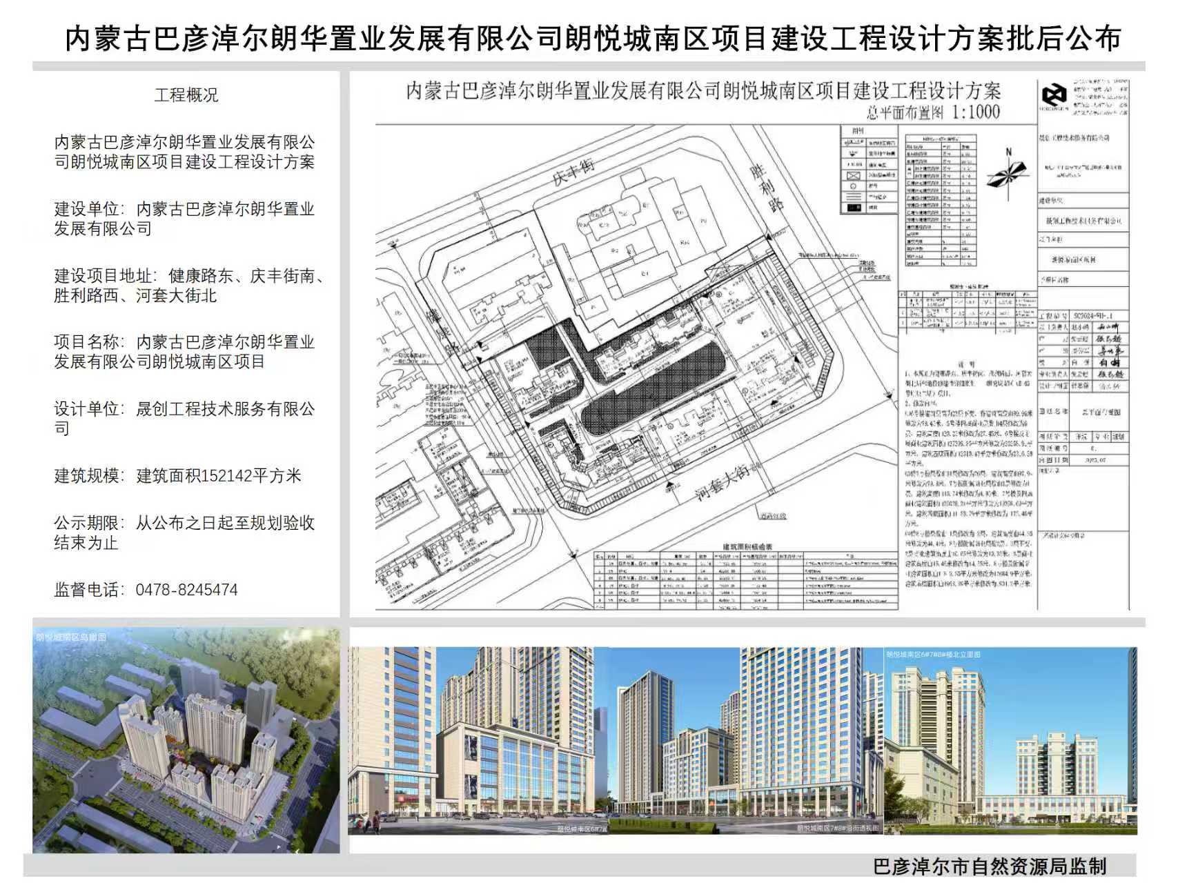 内蒙古巴彦淖尔朗华置业发展有限公司朗悦城南区项目建设工程设计方案批后公布