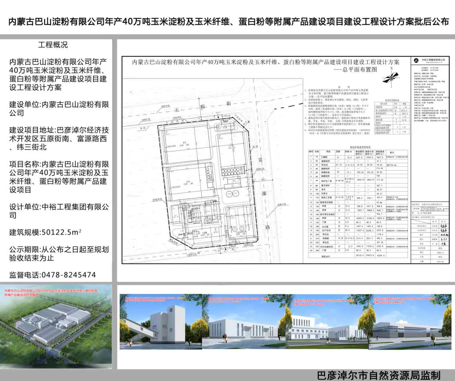 内蒙古巴山淀粉有限公司年产40万吨玉米淀粉及玉米纤维、蛋白粉等附属产品建设项目建设工程设计方案