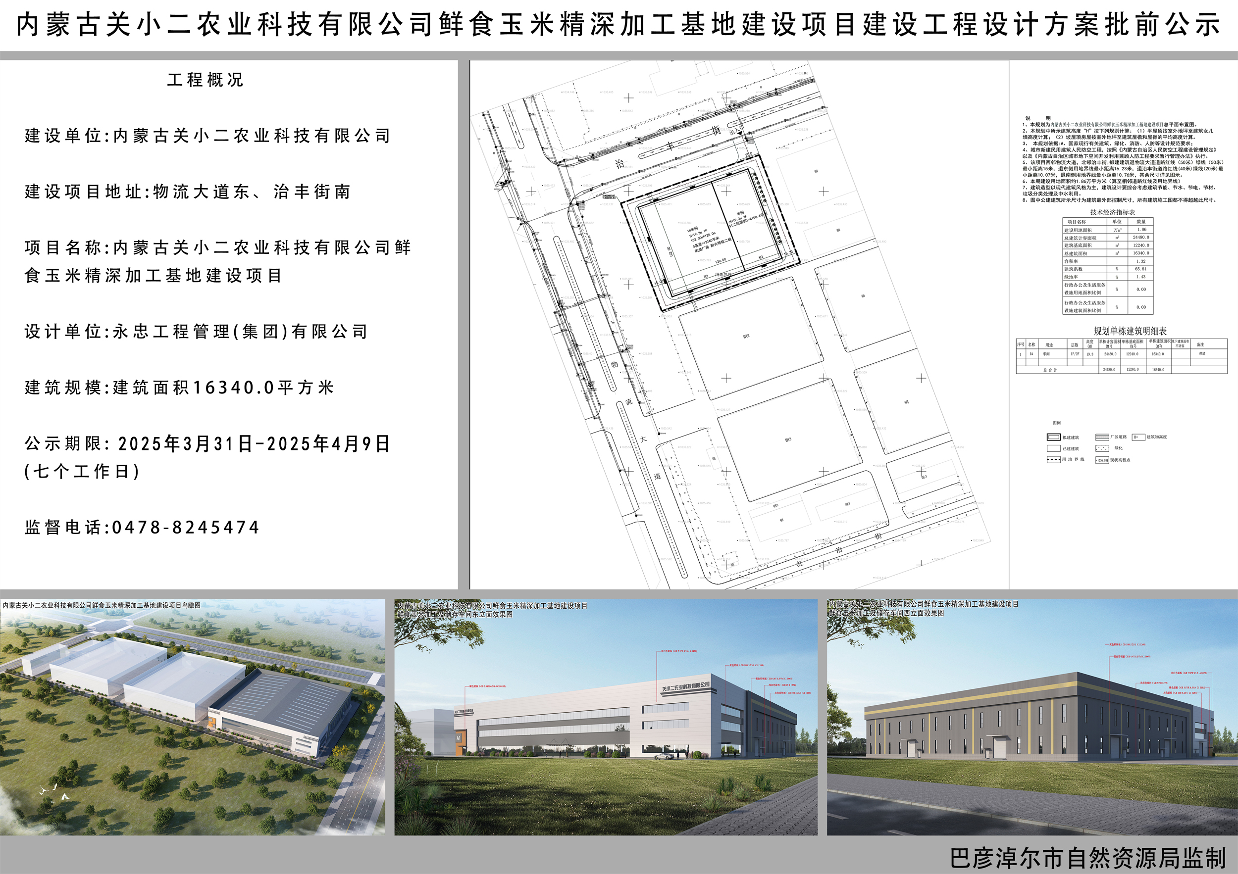 内蒙古关小二农业科技有限公司鲜食玉米精深加工基地项目建设工程设计方案批前公示