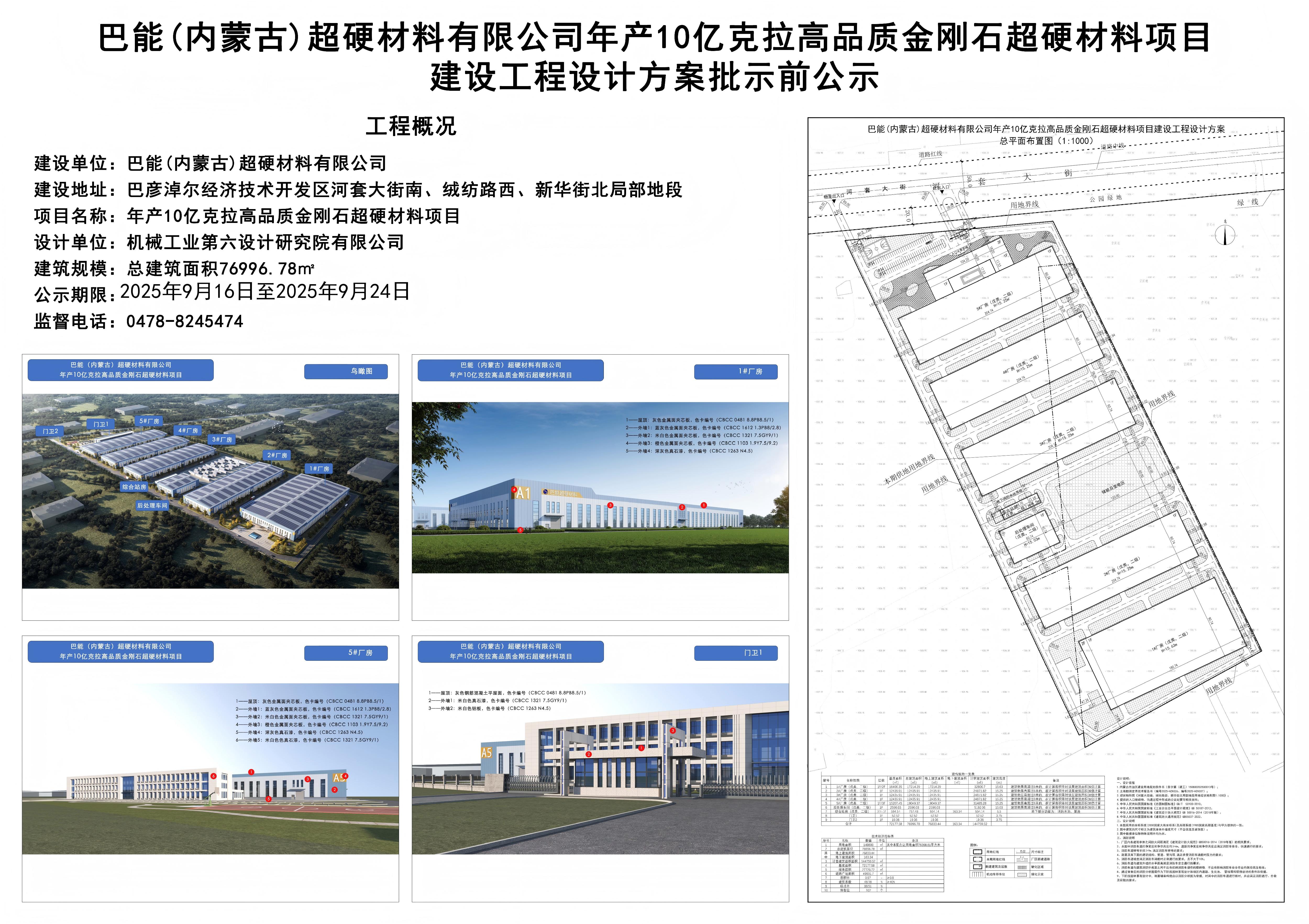 巴能(内蒙古)超硬材料有限公司年产10亿克拉高品质金刚石超硬材料项目建设工程设计方案及造型批前公示