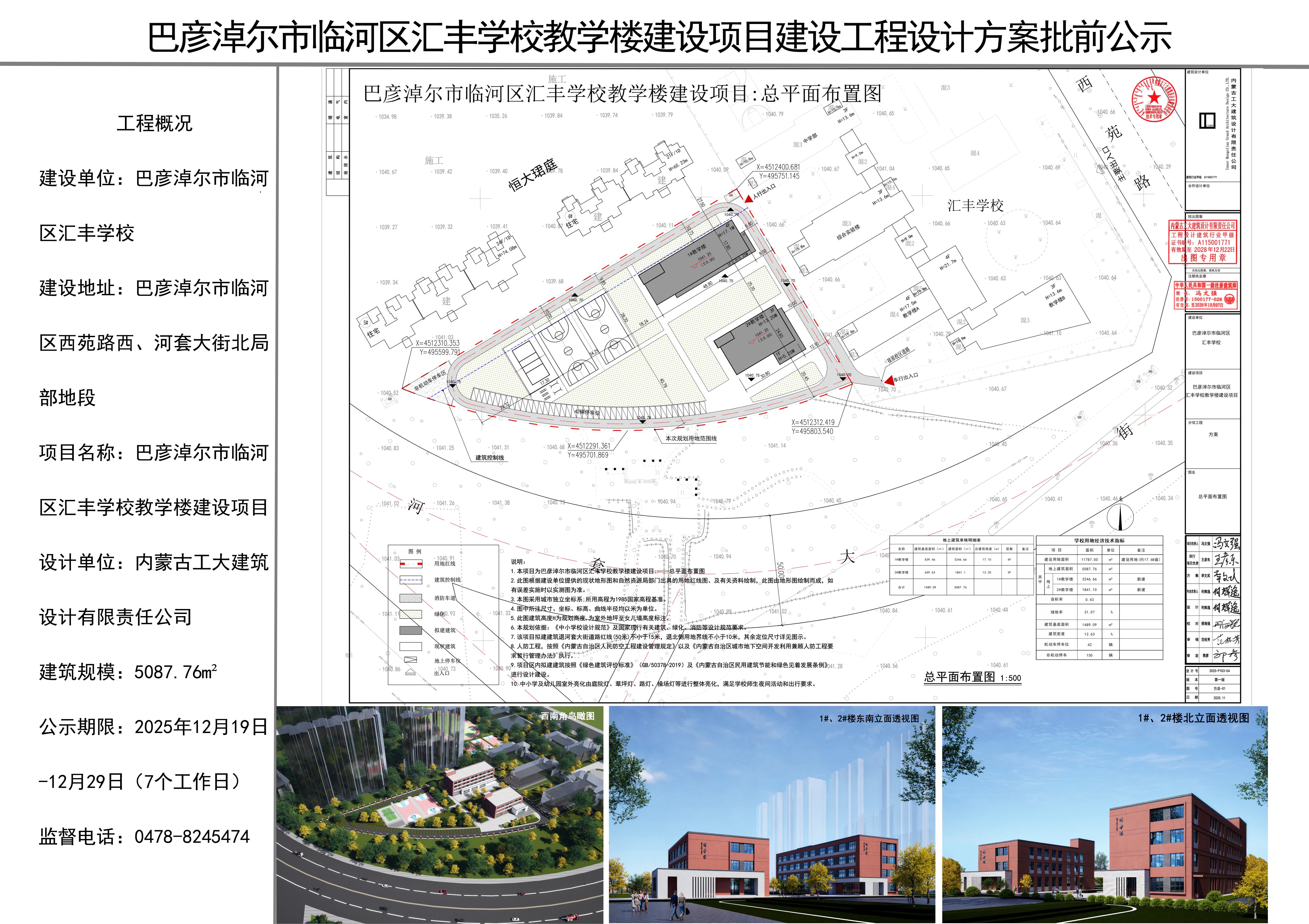 巴彦淖尔市临河区汇丰学校教学楼建设项目建设工程设计方案批前公示