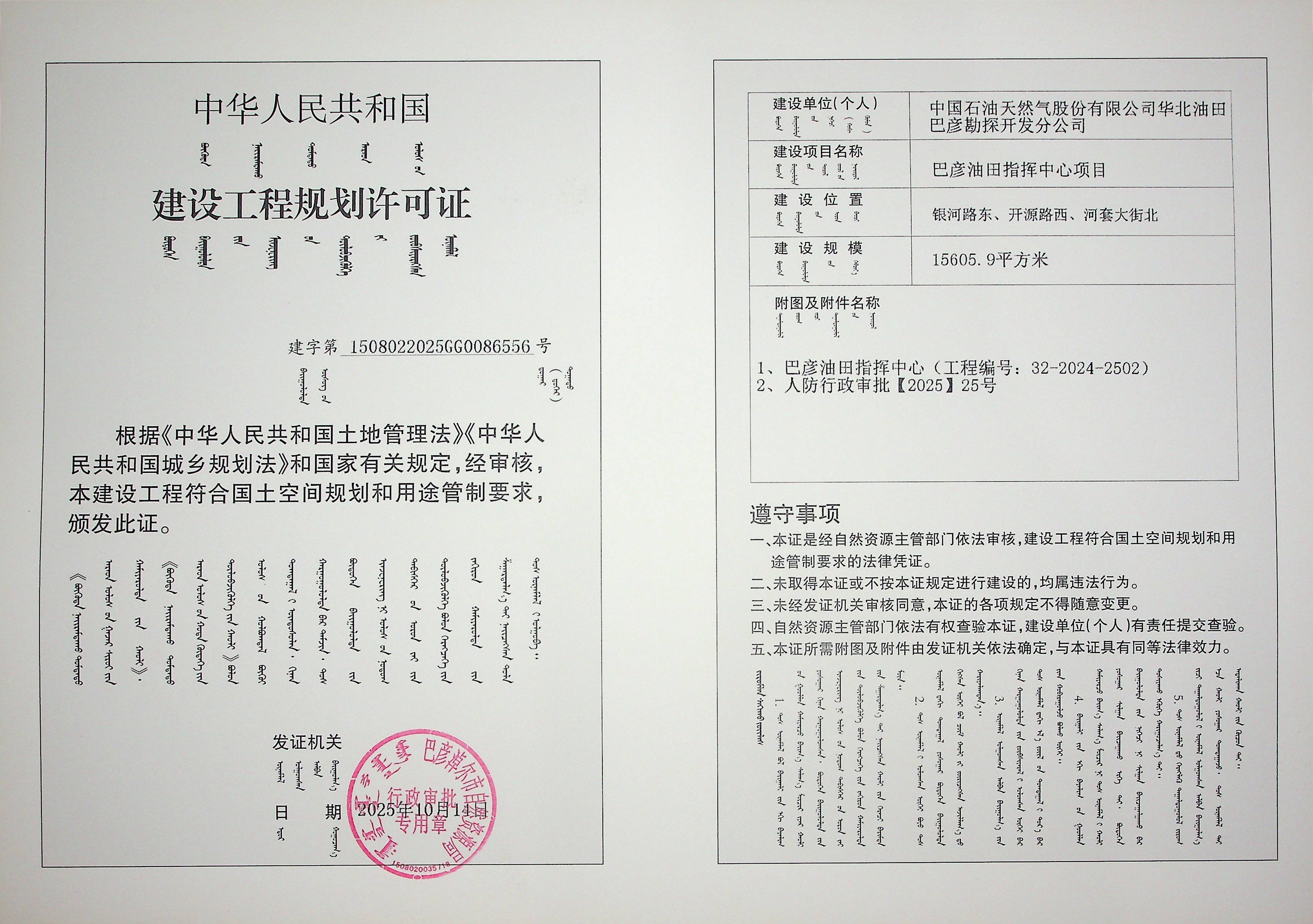 巴彦油田指挥中心项目(建设工程规划许可证)