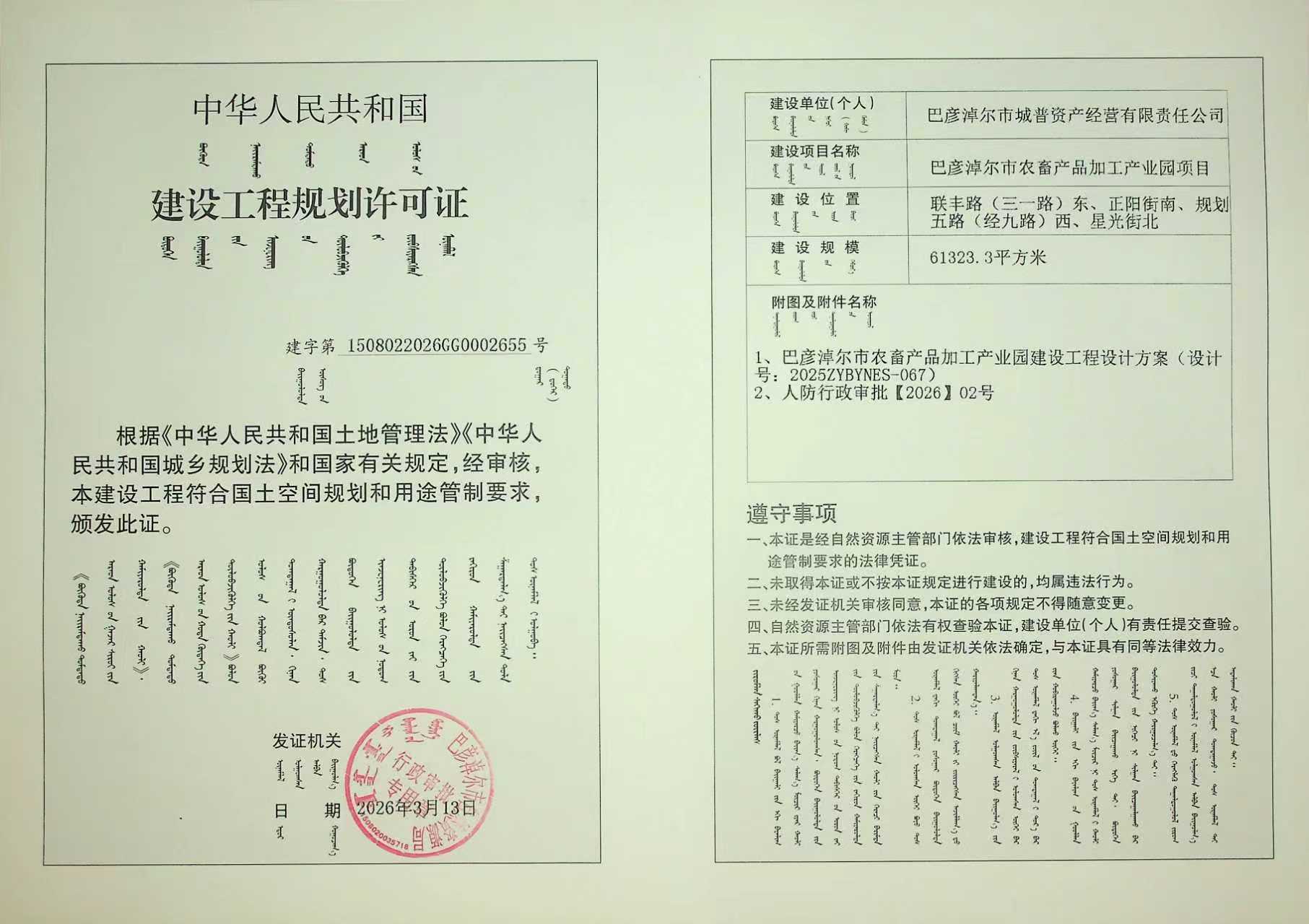 巴彦淖尔市农畜产品加工产业园项目(建设工程规划许可证)