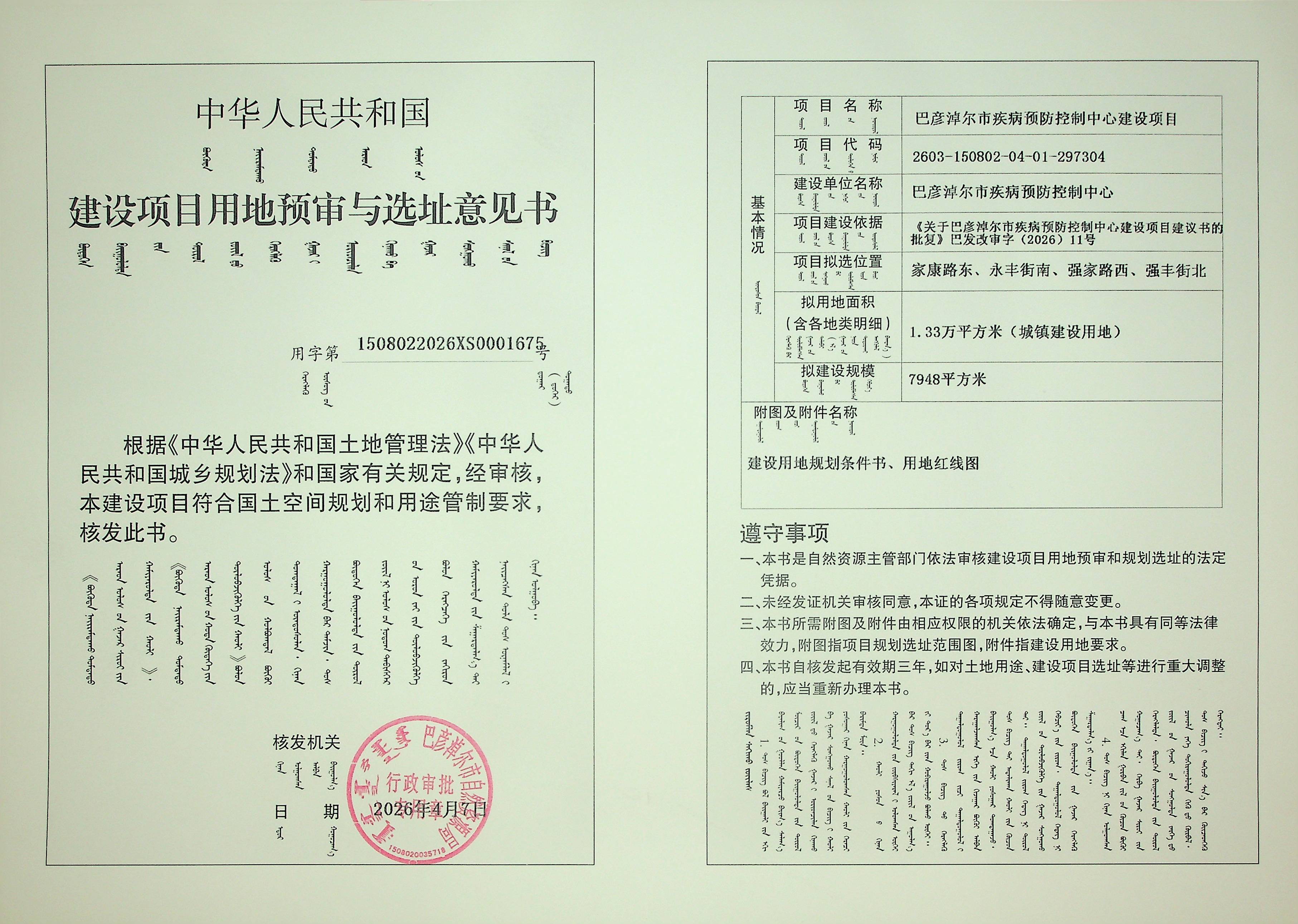 巴彦淖尔市疾病预防控制中心建设项目(建设项目用地预审与选址意见书)