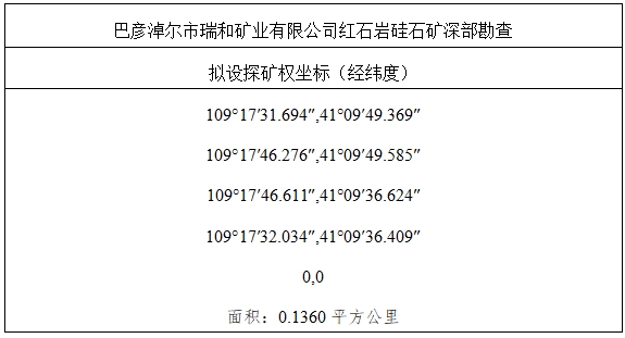 关于巴彦淖尔市瑞和矿业有限公司红石岩硅石矿深部勘查探矿权的协议出让公示