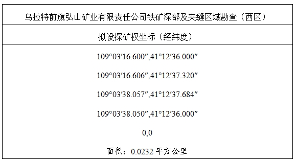 关于乌拉特前旗弘山矿业有限责任公司铁矿深部及夹缝区域勘查(西区)探矿权的协议出让公示
