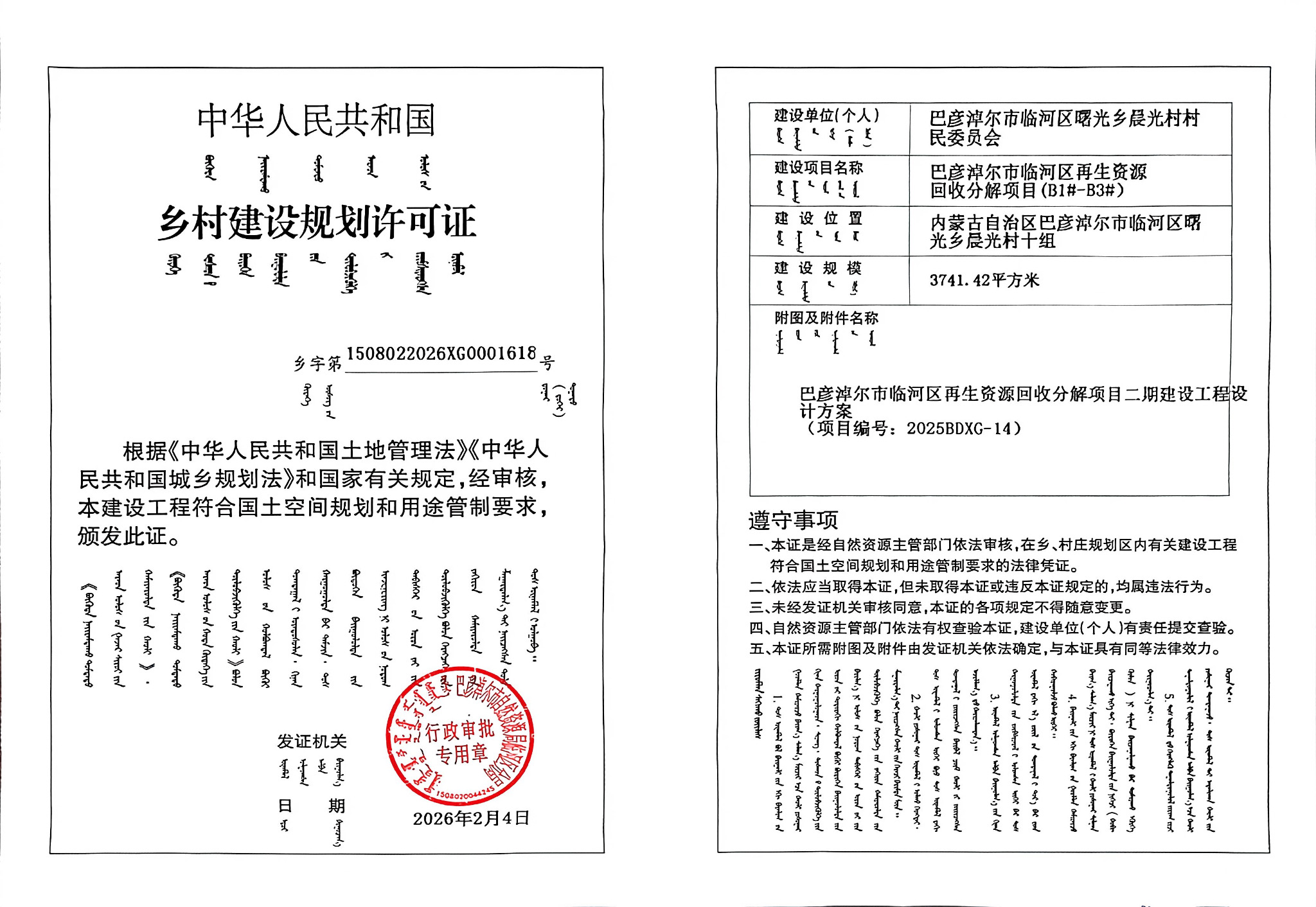 巴彦淖尔市临河区再生资源回收分解项目(B1#-B3#)(乡村建设规划许可证)