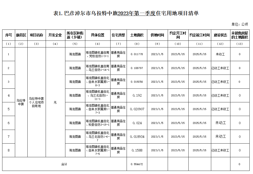 巴彦淖尔市乌拉特中旗2023年第一季度住宅用地项目信息