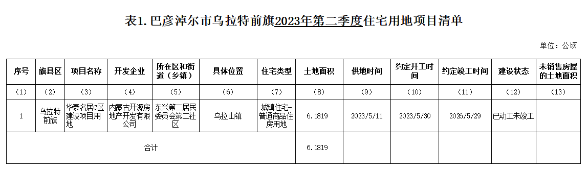 巴彦淖尔市乌拉特前旗2023年第二季度住宅用地项目信息