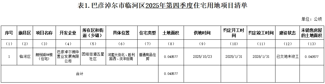 巴彦淖尔市临河区2025年第四季度住宅用地项目信息