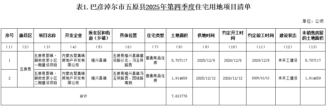 巴彦淖尔市五原县2025年第四季度住宅用地项目信息