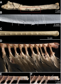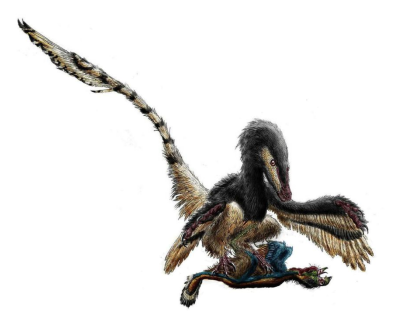 那是如何确定伶盗龙身披羽毛呢?2007年,古生物学家在一个来自于蒙古的伶盗龙化石前臂上发现了羽茎瘤。羽茎瘤的发现显示伶盗龙拥有羽毛,而且应该是类似现代鸟类翅膀上包含羽轴与羽支的片状羽毛。