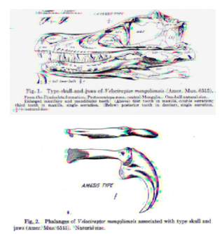 蒙古伶盗龙正模标本的素描,由奥斯本在1924年所绘制