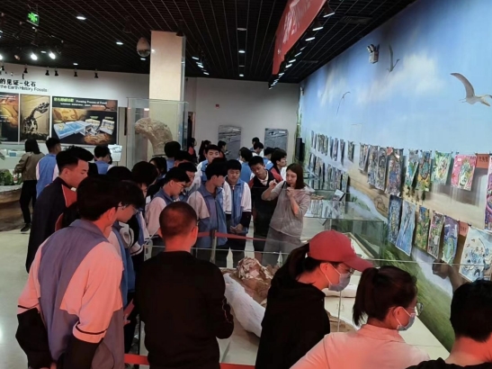 博物馆内,琳琅满目的古生物化石展品让学生们目不暇接。他们驻足在恐龙骨架前,惊叹于这些史前巨兽的庞大身躯,他们仿佛穿越时空,重返中生代。