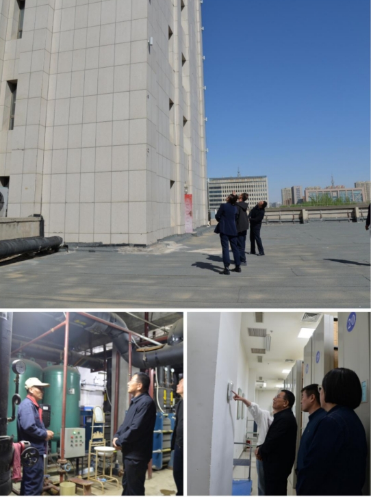 在排查检查过程中,相关人员对消防储水泵房、服务器机房、档案室、库房、地下一层水电中控室等重点区域以及外墙干挂石材等水、电、消防设施进行了全面的排查检查。每到一处,相关人员仔细查看了各类设备设施的运行、安全管理制度落实、建立应急处置情况。同时,还查看了“五一”假期值班安排情况。