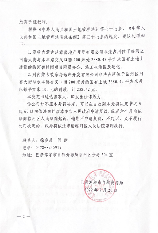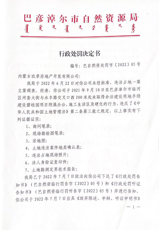 自然资源行政处罚决定书 编号:巴自然资处罚字〔2022〕05号