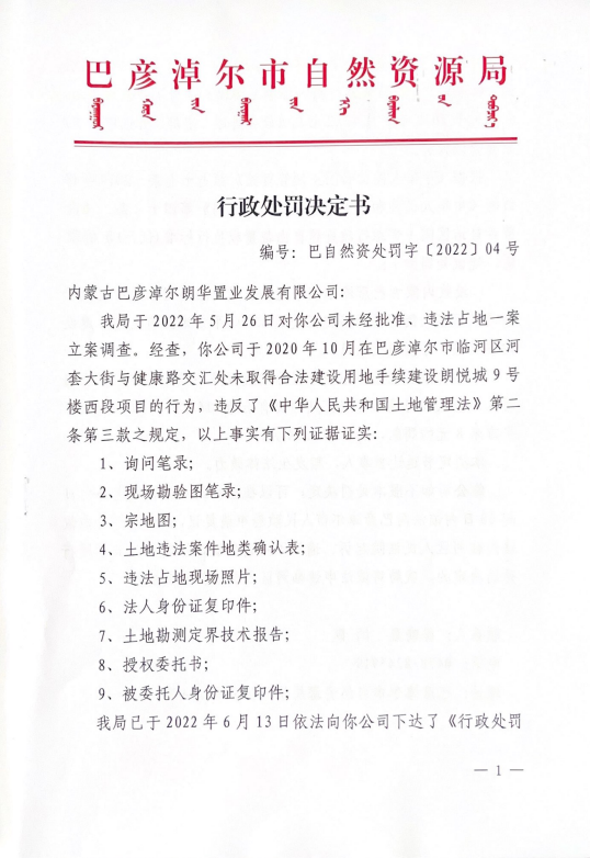 自然资源行政处罚决定书 编号:巴自然资处罚字〔2022〕04号
