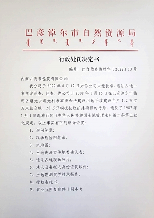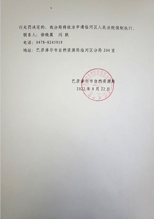 自然资源行政处罚决定书 编号:巴自然资临罚字〔2022 〕13号