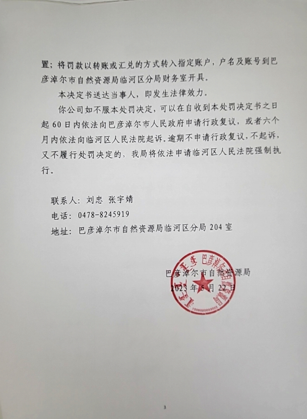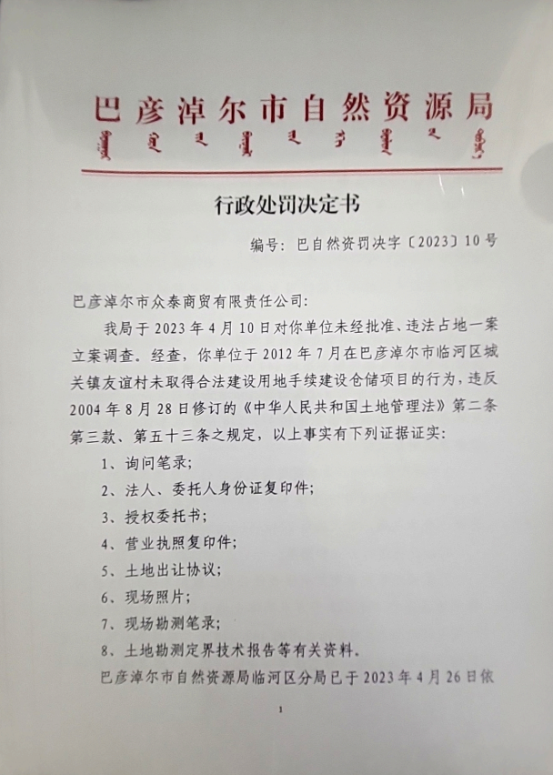 自然资源行政处罚决定书 编号:巴自然资临罚字【2023】10号