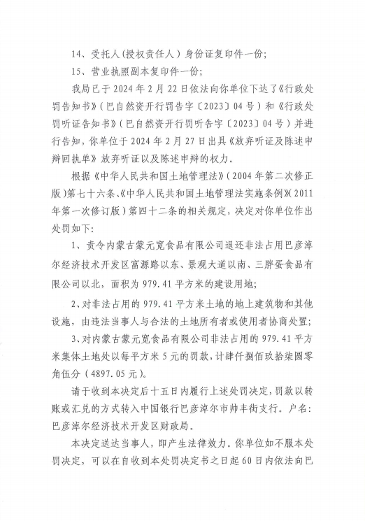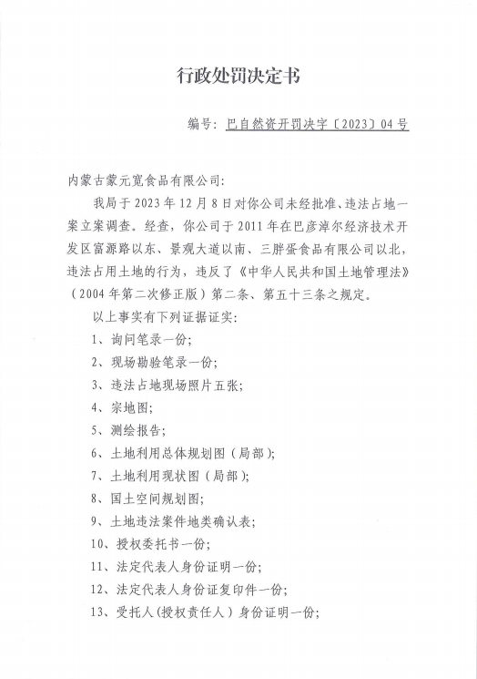 自然资源行政处罚决定书 编号:巴自然资开罚决字【2023】4号